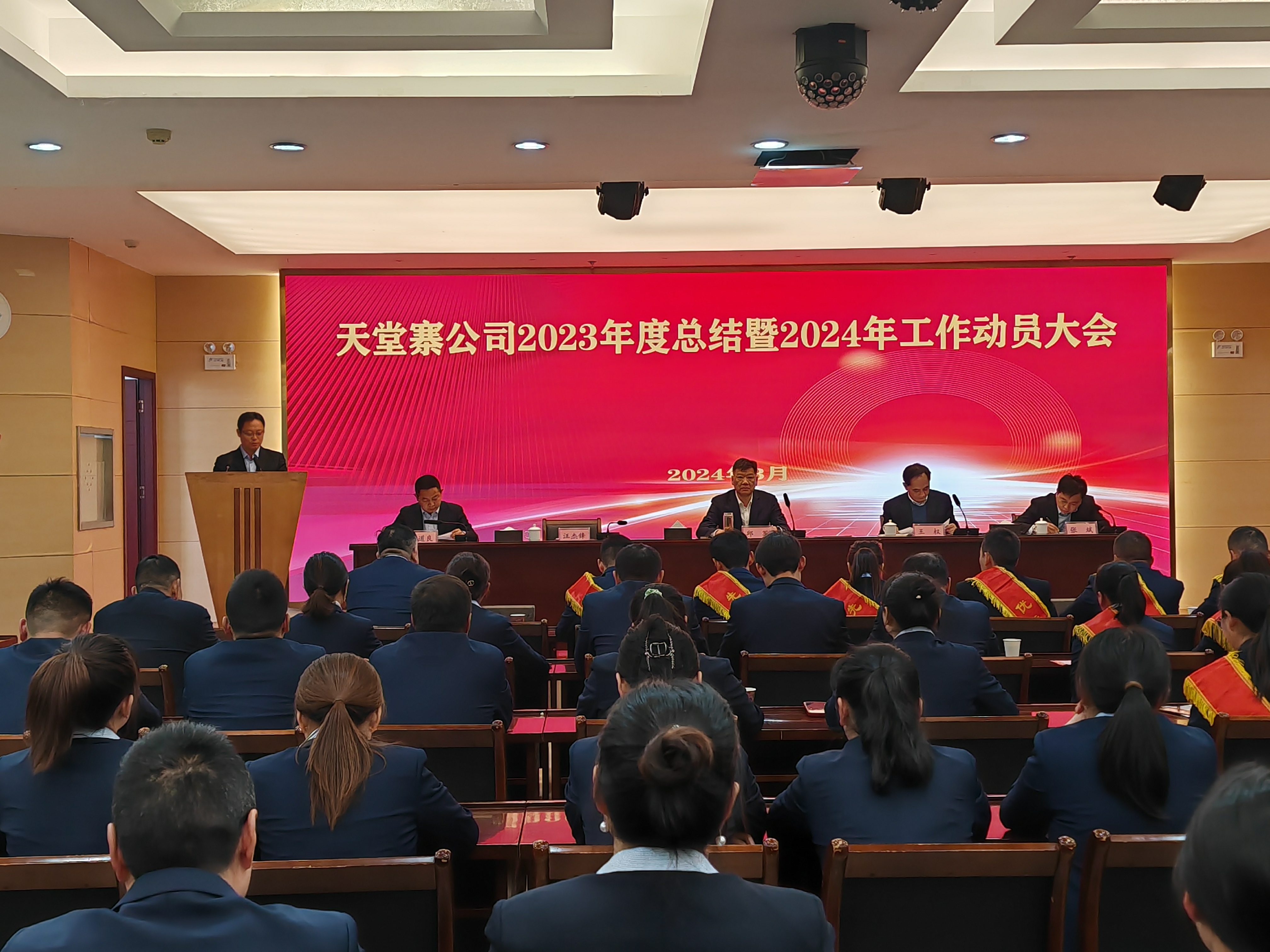 天堂寨公司黨總支書(shū)記、總經理(lǐ)汪傑鋒在大(dà)會上作(zuò)了《2023年(nián)度工(gōng)作(zuò)總結暨2024年(nián)工(gōng)作(zuò)動員(yuán)的報告》。