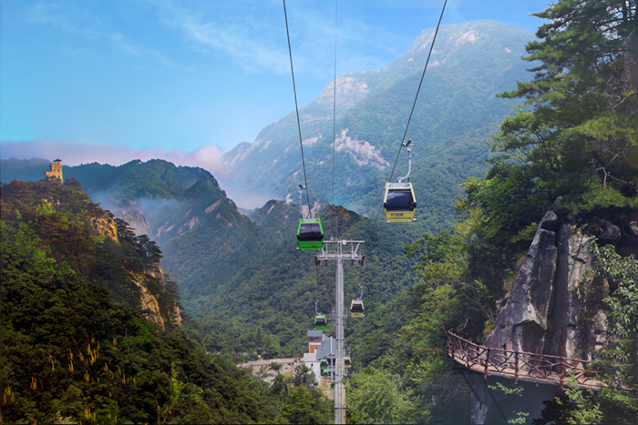 天堂寨大(dà)别山(shān)索道:索道全長2300米,上下站(zhàn)高差630米,每車廂可(kě)乘坐(zuò)8人,車廂總數量爲92個,最高運行速度爲6米/秒,每小時單向運量最高可(kě)達2500人,分(fēn)别在天屏峰、瀉玉瀑和虎行地設上中下三站(zhàn),是目前中國最大(dà)轉角式索道(索與II索之間轉角爲114.88°),也是國内最先進的客運索道之一。索道位于天堂寨風(fēng)景區的核心區,貫穿景區景點的密集區。乘坐(zuò)索道時,華東最後一片原始森林—天堂寨的無限美景便盡收眼底。索道右邊的龍劍峰萬仞絕壁,俯看(kàn)淑女(nǚ)瀑略含嬌羞,似連衣長裙萦舞龍潭,銀弓瀑躬迎貴賓展身(shēn)姿;滿山(shān)杜鵑競綻放(fàng),林海松濤齊鳴;鳳尾竹向您招手,蓼葉竹列隊恭候,觀景峰在等待着您臨峰觀景,索道上站(zhàn)系江淮的分(fēn)水嶺,古稱“吳楚東南(nán)第一關”。站(zhàn)在索道上站(zhàn)的吳楚亭上,可(kě)了望“金獅嘯天”、“夢筆生(shēng)花”、“盆景園”等鬼斧神工(gōng)的自(zì)然景觀。 |